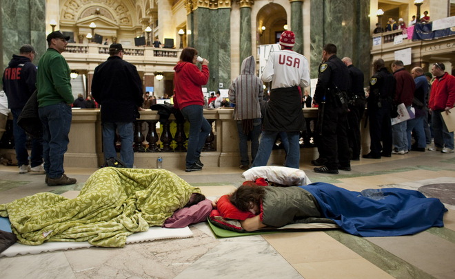 Before the announcement that the Capitol would close Sunday, Jim Palmer, executive director of the Wisconsin Professional Police Association, said Walker should keep the building open and allow the protesters to stay.