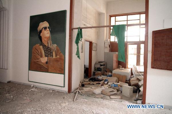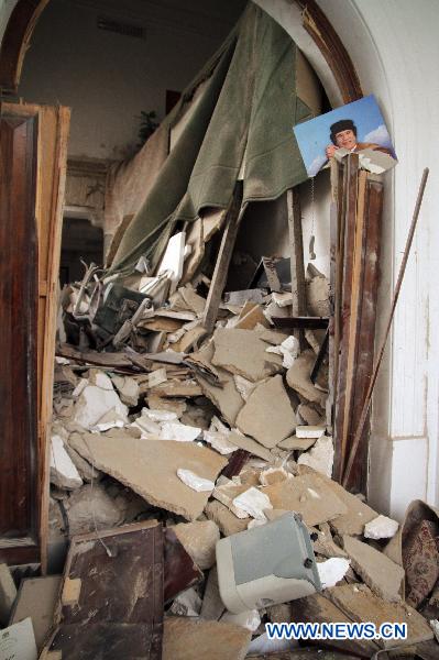 Photo taken during a tour shows the damage in a building after an air raid that targeted the headquarters building of the Higher Committee for Childhood in Tripoli, Libya, April 30, 2011. (Xinhua/Hamza Turkia)