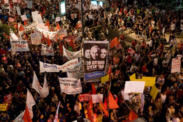 Protesters appeared to have a more sweeping agenda on their minds. Traveling by car, bus, train and foot, some 230,000 Israelis, according to police estimates, descended on Tel Aviv to mount the largest social protest in the country’s history. Young, old and middle-aged, they beat drums and waved flags, some chanting, “Social justice for the people” and “Revolution.”