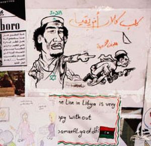 ‘1-82’ Published August 19, 2011 at 300 × 289 in ‘Funny’ Anti-Gaddafi Cartoons Reveal Rebel Racism, Anti-Semitism ‹ Back