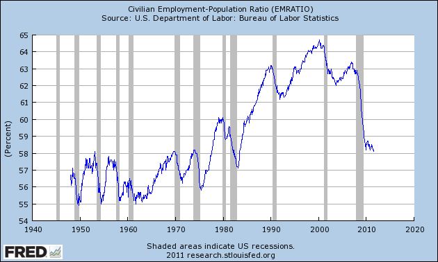 The long-term deterioration in the US economy has been covered up by “reforming” the official measures of unemployment and inflation. The U3 measure of unemployment, the current 9.1 per cent unemployment rate, only measures unemployment among those who are actively seeking a job. Those who have become discouraged by the inability to find a job and have ceased looking are not counted as being among the unemployed, and the U3 measure makes no adjustment for those who are forced into part-time jobs because there is no full-time employment.