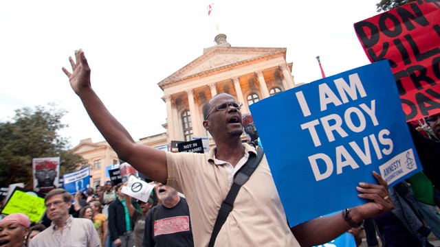 Michael Henry and other protesters for Troy Davis gather on the steps of the Georgia Capitol building, Sept. 20, 2011 in Atlanta, Georgia.