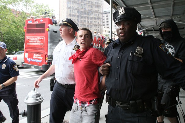 Police say most arrests were for blocking traffic, though one person was charged with assaulting an officer, the AP says. A protest spokesman called the police response “exceedingly violent.”