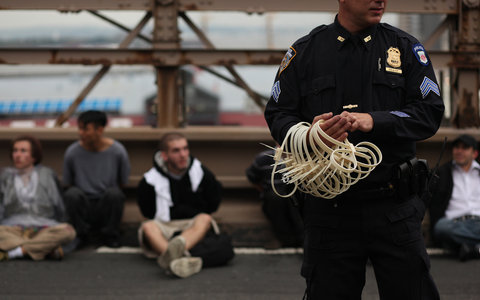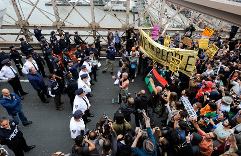 “Protesters who used the Brooklyn Bridge walkway were not arrested,” Paul J. Browne, the chief spokesman for the New York Police Department, said. “Those who took over the Brooklyn-bound roadway, and impeded vehicle traffic, were arrested.”