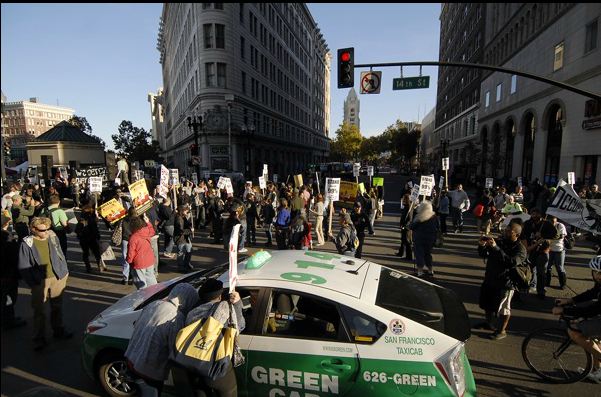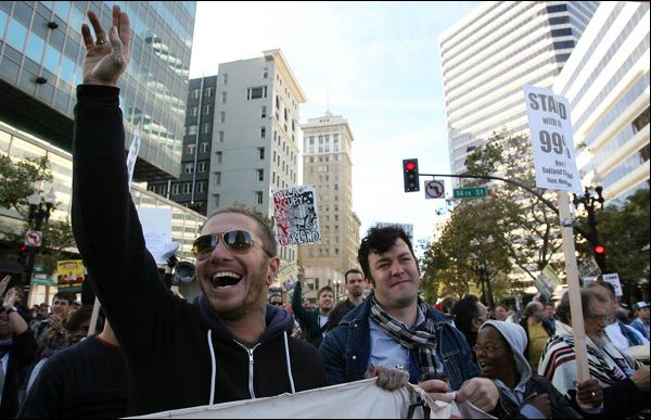 The demonstration aims to shut down the city by targeting banks, corporations and the Port of Oakland in solidarity with worldwide Occupy movement that decries the economic wealth of the very rich 1 percent while 99 percent of the population struggles to find jobs and pay the bills.