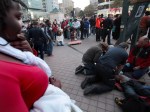 Medics tend to Alex, who had been staying at Occupy Oakland, after he was shot on Thursday, Nov. 10. – Photo: Jane Tyska, AP