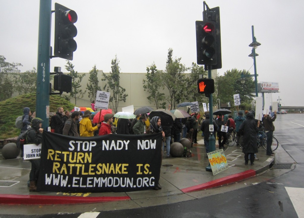 As you read these words, one of the Northern California East Bay Area’s wealthiest men is getting away with an act of cultural genocide. Construction crews employed by wireless technology magnate John Nady began trenching grading, excavating, and building atop Rattlesnake Island in Lake County, California last week, in the latest phase of Nady’s seven-year-long effort to build two houses on the sacred grounds of the Elem Pomo tribe. Reportedly, private security guards flank the construction area in case of any attempt by the Elem and their supporters to occupy the island, as occurred during a previous developer’s attempt to build there in the early-’70s.