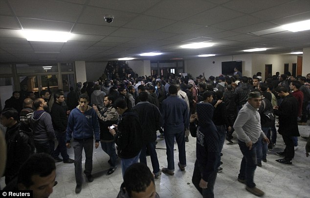 ‘article-2090610-11661D32000005DC-475_634x406’ Published January 24, 2012 at 634 × 406 in Gadhafi Loyalists ‘Retake’ Town of Bani Walid Occupation: Crowds demanded to speak NTC leader Mustafa Abdel Jalil after reaching the second floor ‹ Back