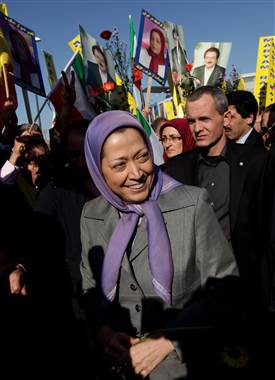 Maryam Rajavi, president of the National Council of Resistance of Iran, greets several hundred Iranian expatriates who had gathered to welcome her at Tegel Airport in Berlin, Germany, on March 22, 2010.
