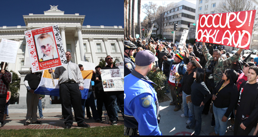Members of a pro-white group called the South Africa Project protest violence in South Africa against whites, during a demonstration at the Capitol, Sacramento, Calif., Monday, Feb. 27, 2012. A clash erupted between law enforcement officers and members of the Occupy Movement as the authorities were escorting the group to a parking garage following their protest. (AP Photo/Rich Pedroncelli)