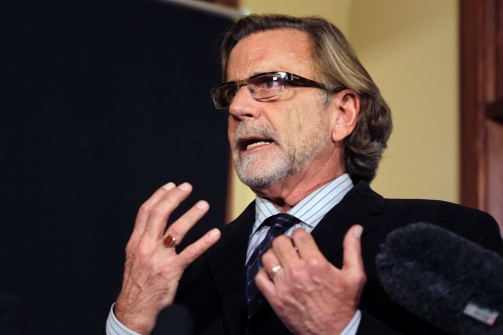 Attorney John Henry Browne, who will be representing the U.S. soldier accused of killing 16 Afghan civilians, talked to reporters in Seattle, March 15, 2012, Ted S. Warren / AP Photo