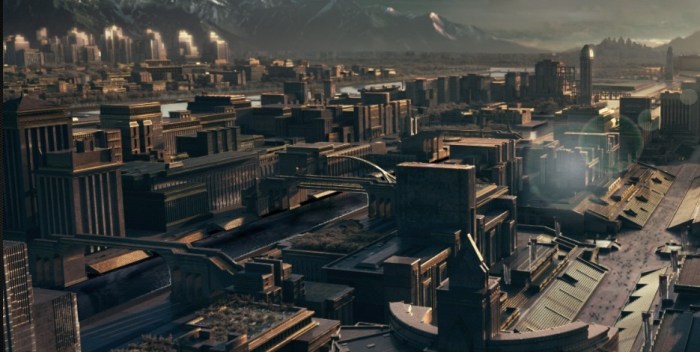 The contrast between the Capitol and the districts in this world is like comparing different planets, with the districts suffering in nearly pre-capitalist conditions of poverty, starvation and barter economy, with sparse access to electricity and inadequate plumbing to the point where the viewer first wonders if this part of the world is in a time warp from the 1700’s, while those in the Capitol enjoy futuristic technology, elaborate costumes and are able to chatter jovially while communities outside of the Capitol suffer, hunt game and worry about where their next meal will come from.