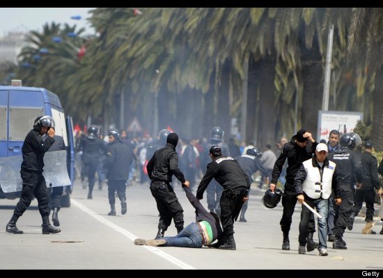 Police beat back groups of protesters with batons and chased stone-throwing youths down side streets in scenes reminiscent of the tactics used during Ben Ali’s 23 years as president, when Tunisia was a police state and freedoms severely restricted.