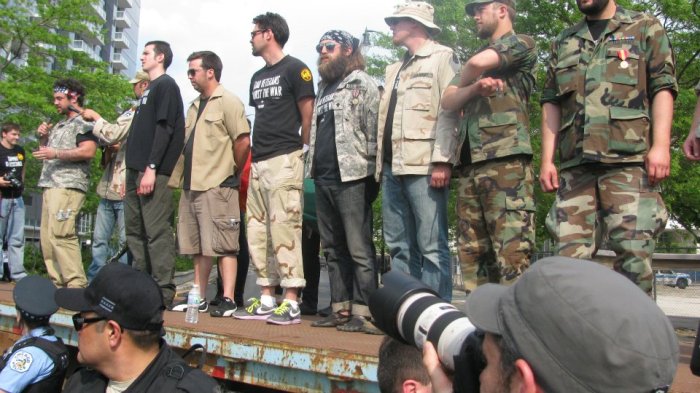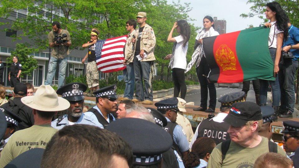 NATO protests – More than 40 veterans of Iraq and Afghanistan throw down their medals in protest of wars, lies and greed By The Red Phoenix on May 20, 2012 • ( 0 ) Share this: Click to share on Print & PDF (Opens in new window) Print & PDF Click to email a link to a friend (Opens in new window) Email Click to share on Facebook (Opens in new window) Facebook Click to share on X (Opens in new window) X More Click to share on Reddit (Opens in new window) Reddit Click to print (Opens in new window) Print Click to share on LinkedIn (Opens in new window) LinkedIn Click to share on Tumblr (Opens in new window) Tumblr Like Loading...‹ Video: Chicago NATO Summit ProtestsVideo: Chicago Police Van Plows Through NATO Protesters ›Categories: Anti-War, Imperialism, Imperialist War, Internet, Media & Culture, Statements, U.S. News Related Articles Video: General David Petraeus reviled as War Criminal Deleted Daily Mail Online Article: “US Backed Plan for Chemical Weapon Attack in Syria to Be Blamed on Assad” Bradley Manning Found Guilty On Most Counts, Acquitted of ‘Aiding the Enemy’ — Faces Over 100 Years in Prison ‘I watch him bleed out:’ Drone operator who helped kill 1,626 targets reveals trauma of watching them die on a computer screen