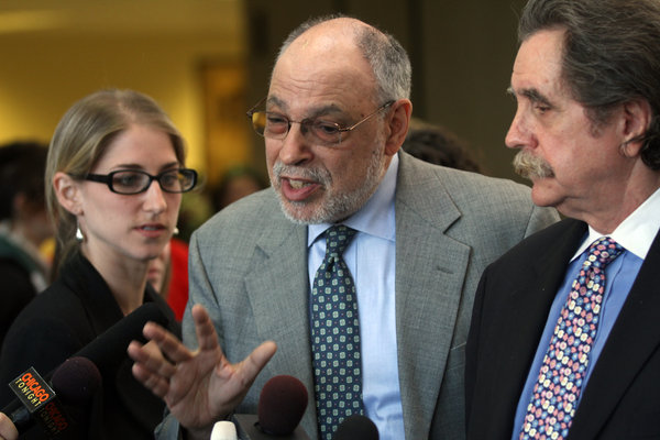 Attorneys Sarah Gelsomino, Michael Deutsch, and Thomas Durkin, who represent Brian Church, Jared Chase and Brent Batterly, hold a press conference at the Cook County Criminal Courthouse on California Avenue at 26th Street Tuesday, May 22, 2012. The three are accused of attempting to make Molotov cocktails to use during NATO Summit protests.