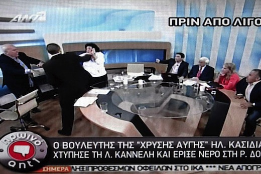 ‘GreekTV-1’ Published June 10, 2012 at 520 × 347 in Greek fascist assaults two women on television ‹ Back