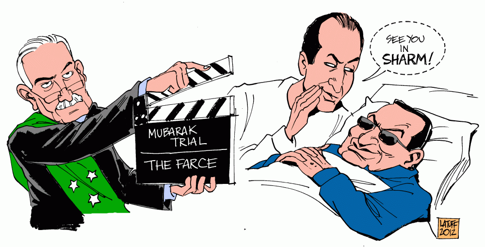 ‘mubarak-verdict’ Published July 12, 2012 at 3429 × 1746 in Political Cartoon: Hosni Mubarak verdict: See you in Sharm! ‹ Back