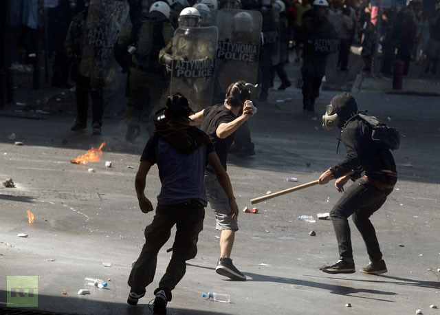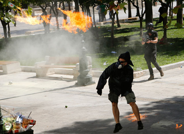 More than 3,000 police officers – double the usual number – were deployed in the capital of Athens to counter the protesters.