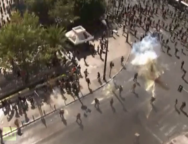 Witnesses reported smoke rising over the square as security forces dispersed most of the protesters. Some remained, and continued the demonstration; others relocated to the streets of Panepistimiou and Benaki, where again started clashing with riot police.