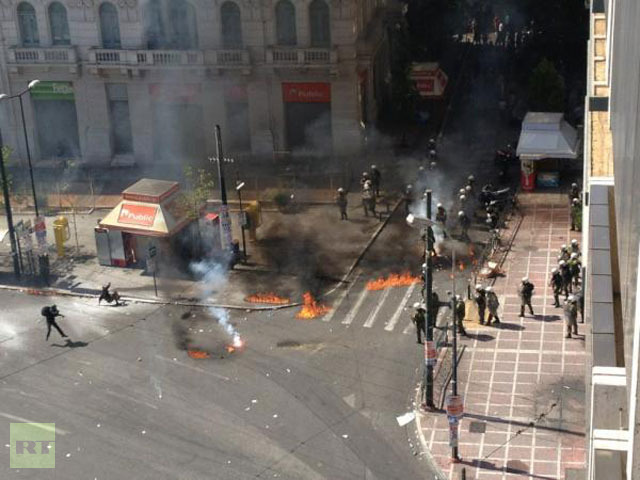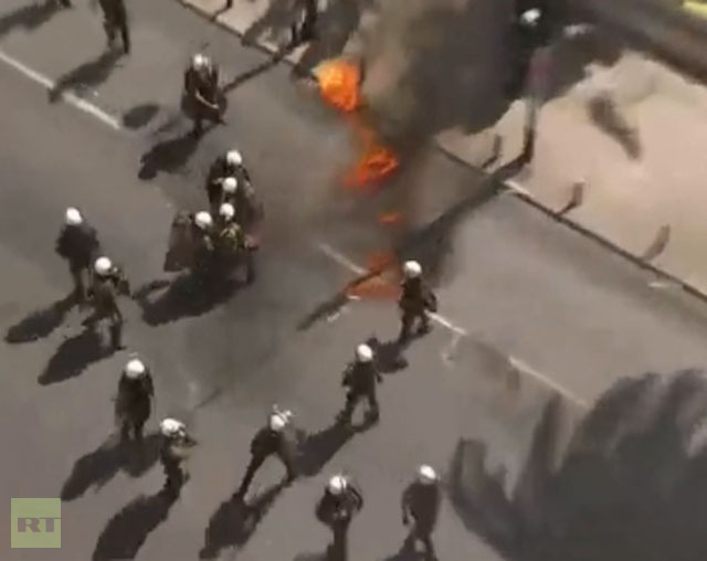 Clashes erupted in different parts of Athens Syntagma Square, with demonstrators throwing fire bombs at police.