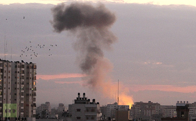 Smoke rises following Israeli air strikes in Gaza City November 14, 2012. An Israeli official said on Wednesday the assassination of Hamas’s top commander in the Gaza Strip was not the end of Israel’s assault on the coastal territory and more strikes would follow. Ahmed Al-Jaabari, Hamas’s military chief, was killed when his car was hit by an Israeli airstrike. Multiple other Israeli attacks rocked the Gaza Strip. REUTERS/Suhaib Salem (GAZA – Tags:
