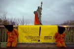 (Amnesty International activists, dressed in orange jumpsuits similar to those worn by prisoners at the US detention camp in Guantanamo Bay AFP Photo / Joel Saget)