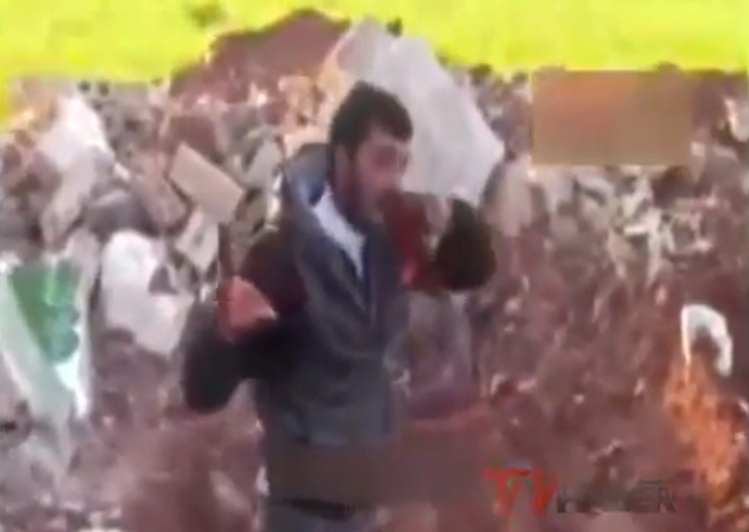 ‘screen_shot_2013-05-14_at_8.32.20_am’ Published May 20, 2013 at 690 × 490 in “Rapid descent into sectarian violence”: Video shows Syrian rebel biting into soldier’s heart Sakkar pretends to bite of the extracted viscera. ‹ Back