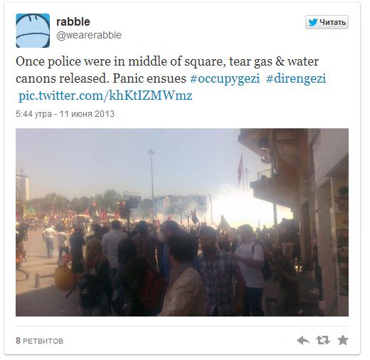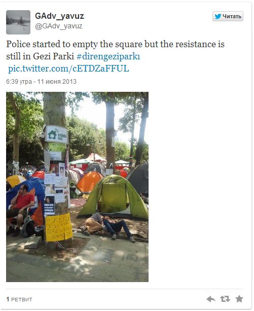 Some people threw Molotov cocktails, and one of the riot police cars was set on fire. Those protesting in Gezi Park have distanced themselves from the attackers in Twitter posts, some calling them “agents provocateurs,” who play along the official depiction of the protesters as marauders and extremists.