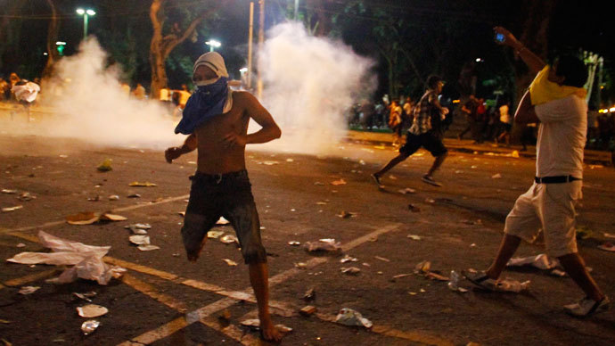 On Wednesday, some 30,000 demonstrators had clashed with riot police in Fortaleza hours before Brazil was set to face off against Mexico in a Confederations Cup match. Meanwhile, an online video asking for international visitors to boycott Brazil’s World Cup went viral, and even Brazilian football legend Pele managed to find himself amidst controversy after seemingly flippant comments directed at the mass protests.