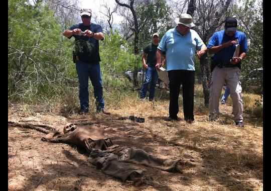 Border Patrol Agent Ryan Osburn snaps a picture of the remains of a body believed to be an undocumented immigrant found on a private ranch in Brooks County in south Texas, as Roel Villarreal, a Brooks County Justice of the Peace, and Brooks County Sheriff’s Deputy Rolando Gutierrez look on.(Photo: Rick Jervis, USA TODAY)