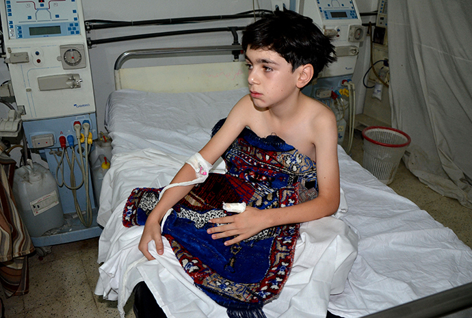 A boy, affected by what activists say is nerve gas, is treated at a hospital in the Duma neighbourhood of Damascus August 21, 2013. (Reuters)