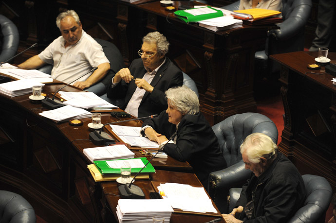 Uruguayan Senator Lucia Topolansky (C) votes to approve a law legalizing marijuana in the Legislative Palace in Montevideo, on December 10, 2013 (AFP Photo/Miguel Rojo)