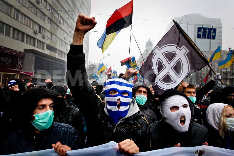 In case one still thinks that the accusations of neo-Nazi participation in the Evromaidan movement are nothing but propaganda coming from supporters of the regime, one can turn to the words of Ukrainian anarchists, how have also been trying to spread the word to Western cheerleaders (see links at the bottom of this text – author). They provide visual evidence of neo-Nazi and nationalist activity. Again, if the non-nationalist parties and their supporters don’t want to be associated with these “bad apples” let them stand up and publicly declare their opposition. Let them publicly condemn parades in honor of Stepan Bandera, the Ukrainian Nazi collaborator, rather than re-writing history and whitewashing his crimes and those of the movement he represented. What’s the worst that could happen, if this neo-Nazi, ultra-right movement is in fact so marginal as the Western media and Evromaidan “moderates” would have us believe?