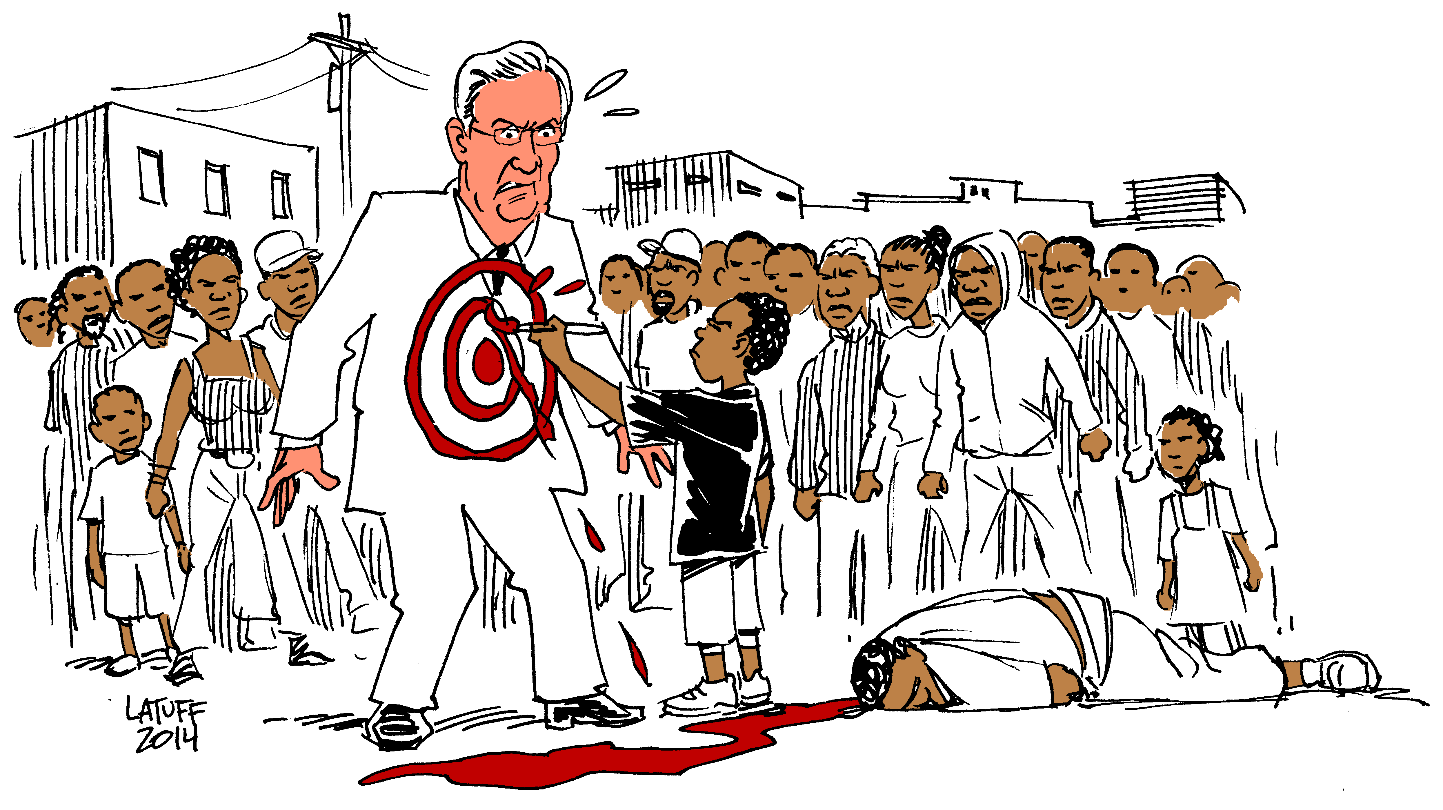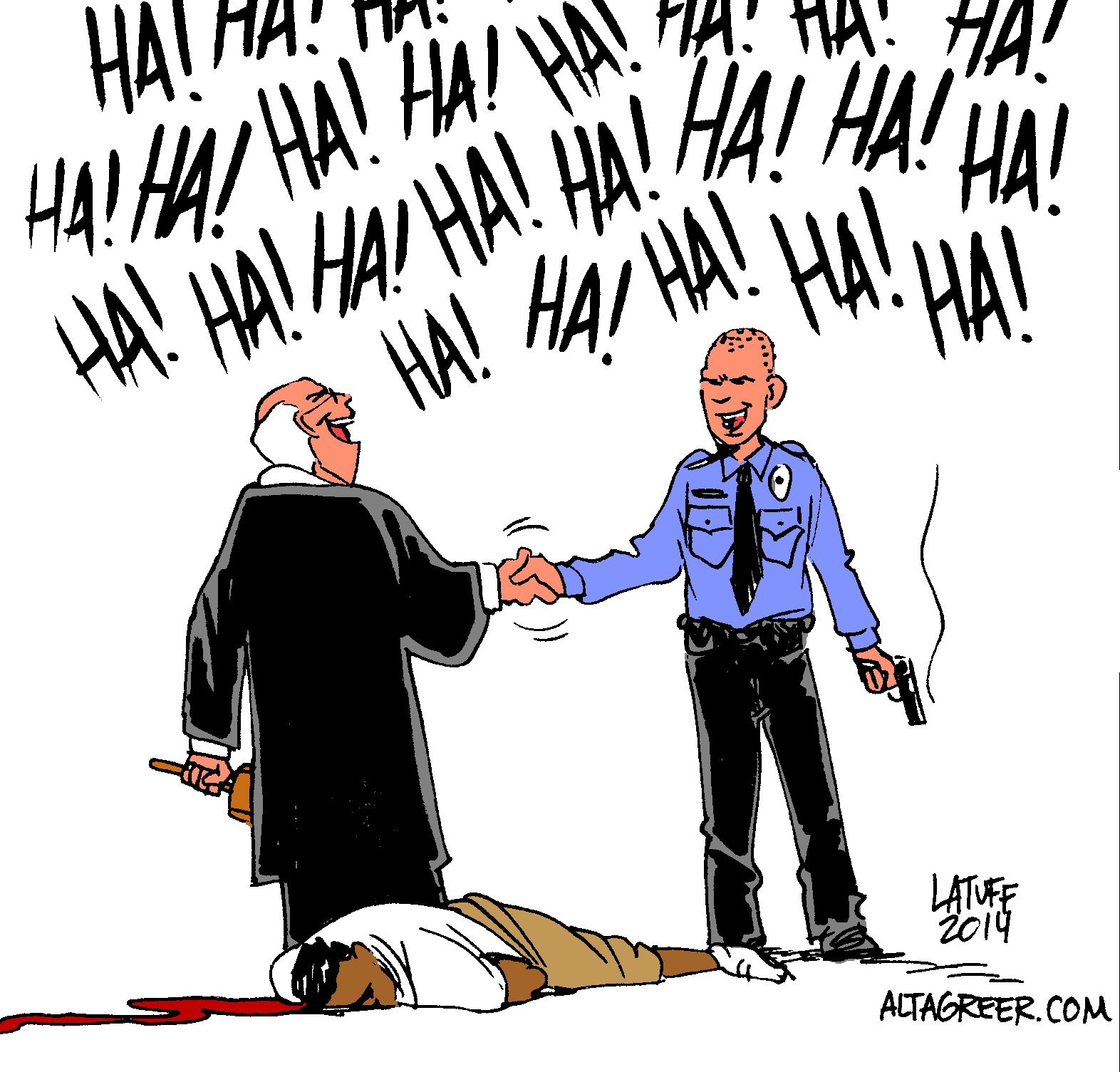 Like Trayvon Martin, the shooting of Michael Brown became not an assessment of whether Darren Wilson was guilty of murder, but whether Brown “deserved” to be shot. Ferguson Police Chief Tom Jackson released a video that allegedly showed Brown shoplifting cigarillos from a convenience store and shoving a clerk when confronted. The legitimacy of this claim has been disputed (in fact evidence has since been released that he paid for the cigars) and has largely been seen by the people as an attempt to demonize Brown’s character. The media and police apologists immediately jumped on the “thug/criminal” and “no angel” bandwagon with this flimsy evidence. Even if it could be proven that Brown did in fact steal a $5 pack of cigarillos from a convenience store, which has absolutely not been established, Wilson was not aware of Brown being involved in any alleged robbery when he saw him on the street and shot at him twelve times. Petty theft is not a capital crime and gunning him down is still murder. The police do not have the legal right to be judge, jury and executioner.