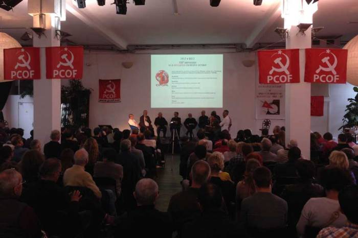 Thanks to comrades from PCOF we are gathered here to celebrate – almost to the day – the 100th anniversary of the Great October Revolution in this historical city where the Paris Communards had written their famous history as if to “conquer the sky”.