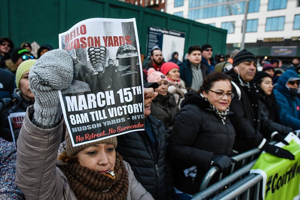 Since December 2017, workers have been fighting against the union-busting tactics of the bosses under the banner of #CountMeIn campaign. Since then, workers have been regularly doing protests in front of the construction site every Thursday morning at 6 a.m 34th Street & 10th Ave. There are currently 4,000 workers in the site.