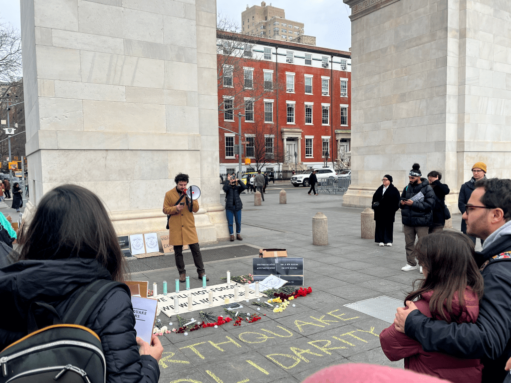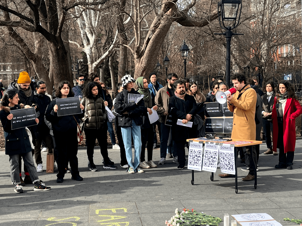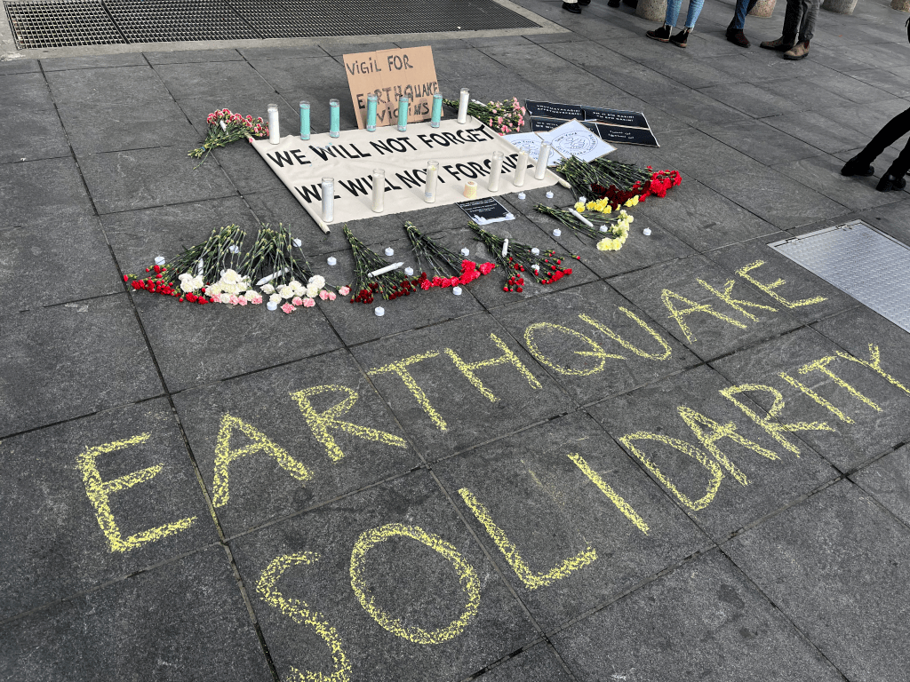 The following was a speech given by members of New York Earthquake Solidarity at the Feb. 19th vigil for victims of the Feb. 6th earthquake that has devastated Turkey and Syria. To join their organizing efforts, contact them on Twitter or Instagram. If you wish to donate to the rescue and recovery work in Turkey and Syria, NYES asks you to consider sending funds to @ResearchInstituteOnTurkey-NY on Venmo.