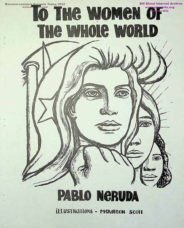 However Neruda’s poetry stands for itself. Such endorsement does not equate to condoning the reprehensible personal behavior he himself describes in his memoir. For another rather better example of his attitude to women, see “To the Women of the World,” illustrated by Maureen Scott of the League of Socialist Artists.