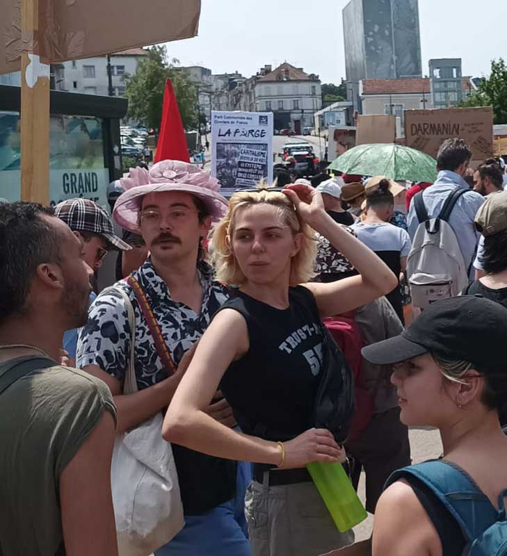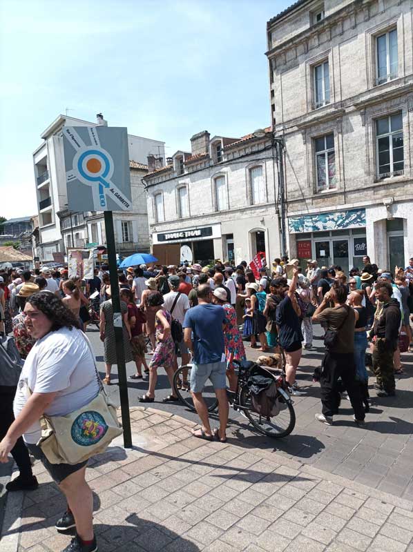The organizations present were Lutte ouvrière, NPA, PCOF, LFI including a deputy, UJR, participants of the June Pride March, associations for the defense of unaccompanied young minors, Baobab and Aadmie, RESF … as well as many people already present against the dissolution of the Earth Uprisings a few days ago. Coordination is being established.