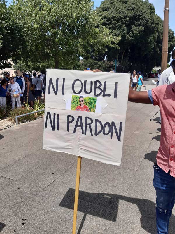 The procession was made up of working-class families, young and old, all under discreet police surveillance whose main activity was to photograph the participants! At the end of the march, during the speech, the commissioner of the gendarmerie tried to speak… but the shouts and refusals prevented him! The killer has now been indicted for voluntary homicide, but will justice prevail? And when? We all remember “Truth and Justice for Steeve” 4 years ago, still without judicial response!