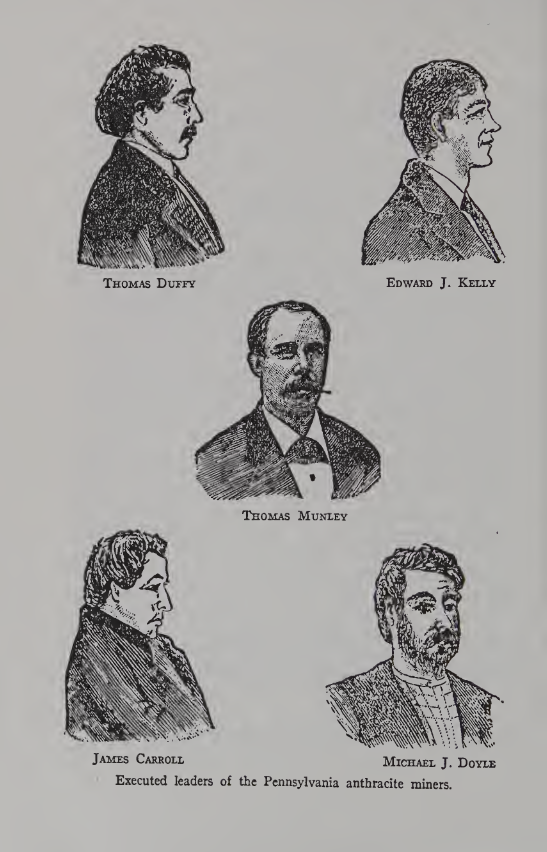 …The execution of the Mollies was the culmination of a class struggle in which the ruling class as victor exterminated its most virulent enemies regardless of the fact whether this individual or that was the actual participant in the killing for which he was convicted. The killings themselves – of which there were more victims among the workers than among the mine owners’ entourage – were part and parcel of the fierce class struggle in progress. The operators could paint the miners as assassins and murderers in lurid colors and succeed in giving their characterization in a sense of reality because, by the very nature of class society, the press and the state were their instruments.