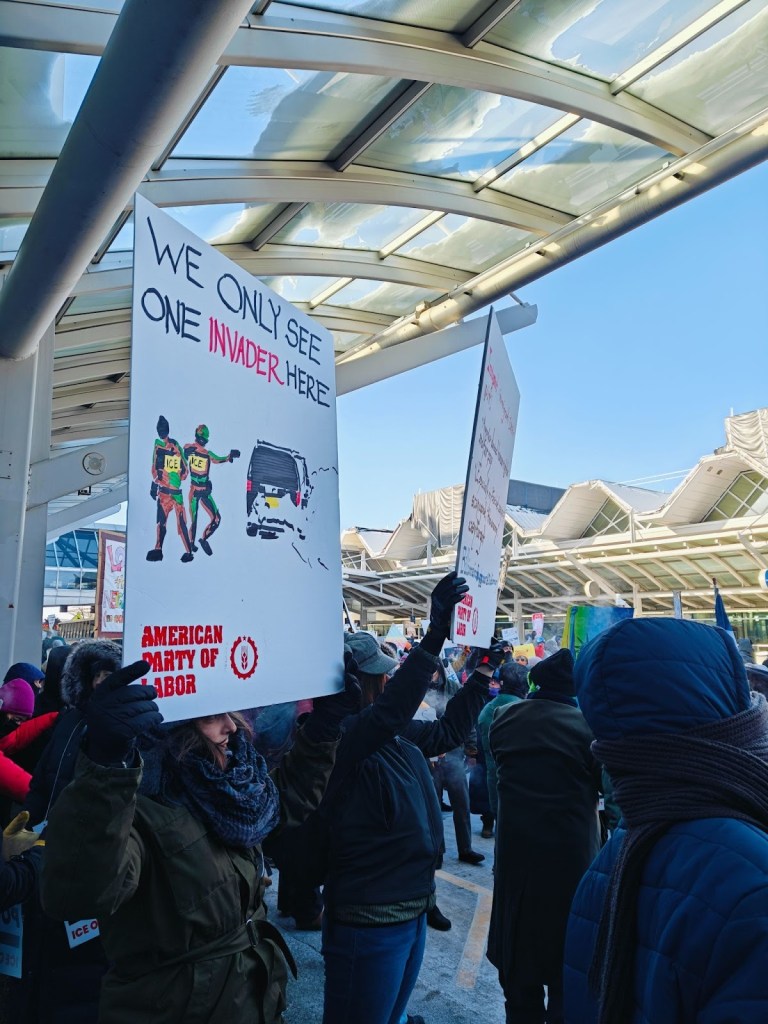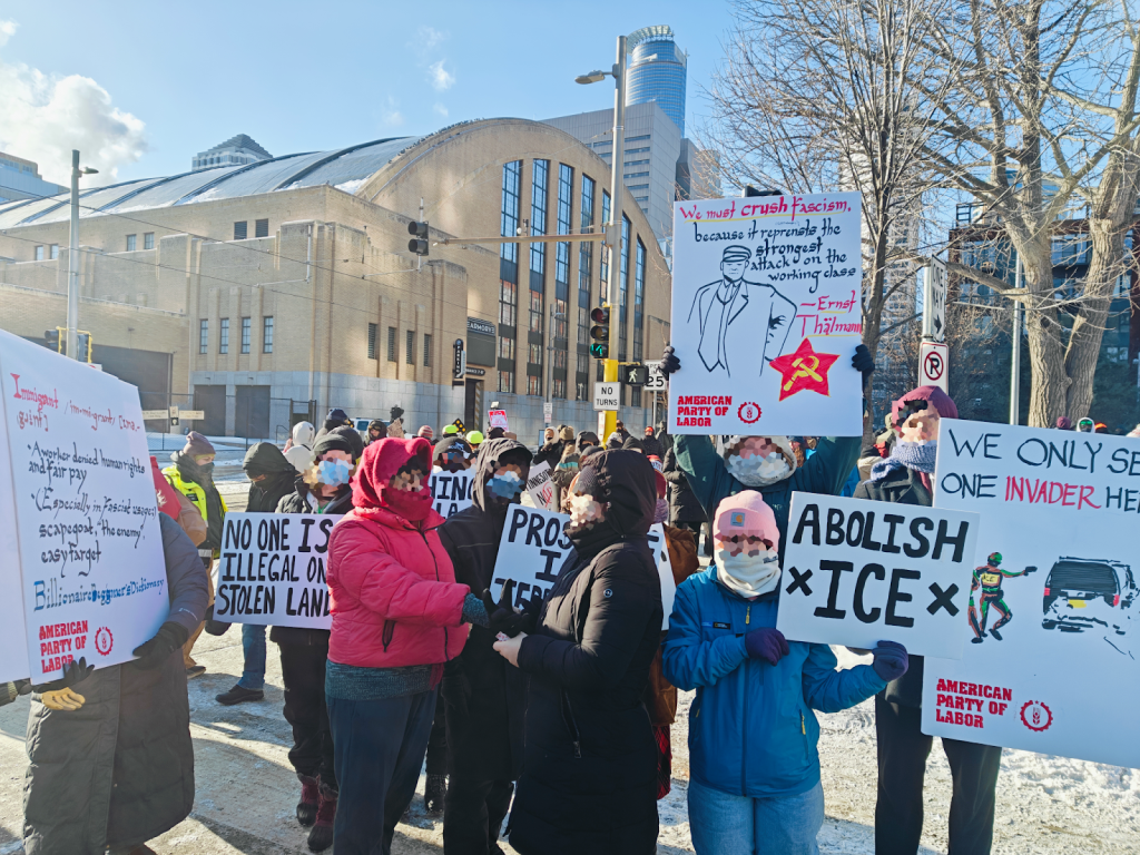 From Jan. 23 to Jan. 24, members of the Ernst Thälmann Division of the American Party of Labor attended three events fighting for ICE’s removal from the Twin Cities, and for the abolition of ICE. On the morning of Jan. 23, members of the Division attended the strike and rally at the airport, organized by Unite Here 17 and local clergy leaders. On the afternoon of the same day, they attended the march to the Target Center. On the following day, Jan. 24, a Red Phoenix reporter attended the vigil for Alex Pretti organized by the Minnesota Immigrants Rights Action Committee (MIRAC).