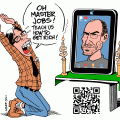 Quick Response code in this cartoon links to this story: Workers Sickened at Apple Supplier in China